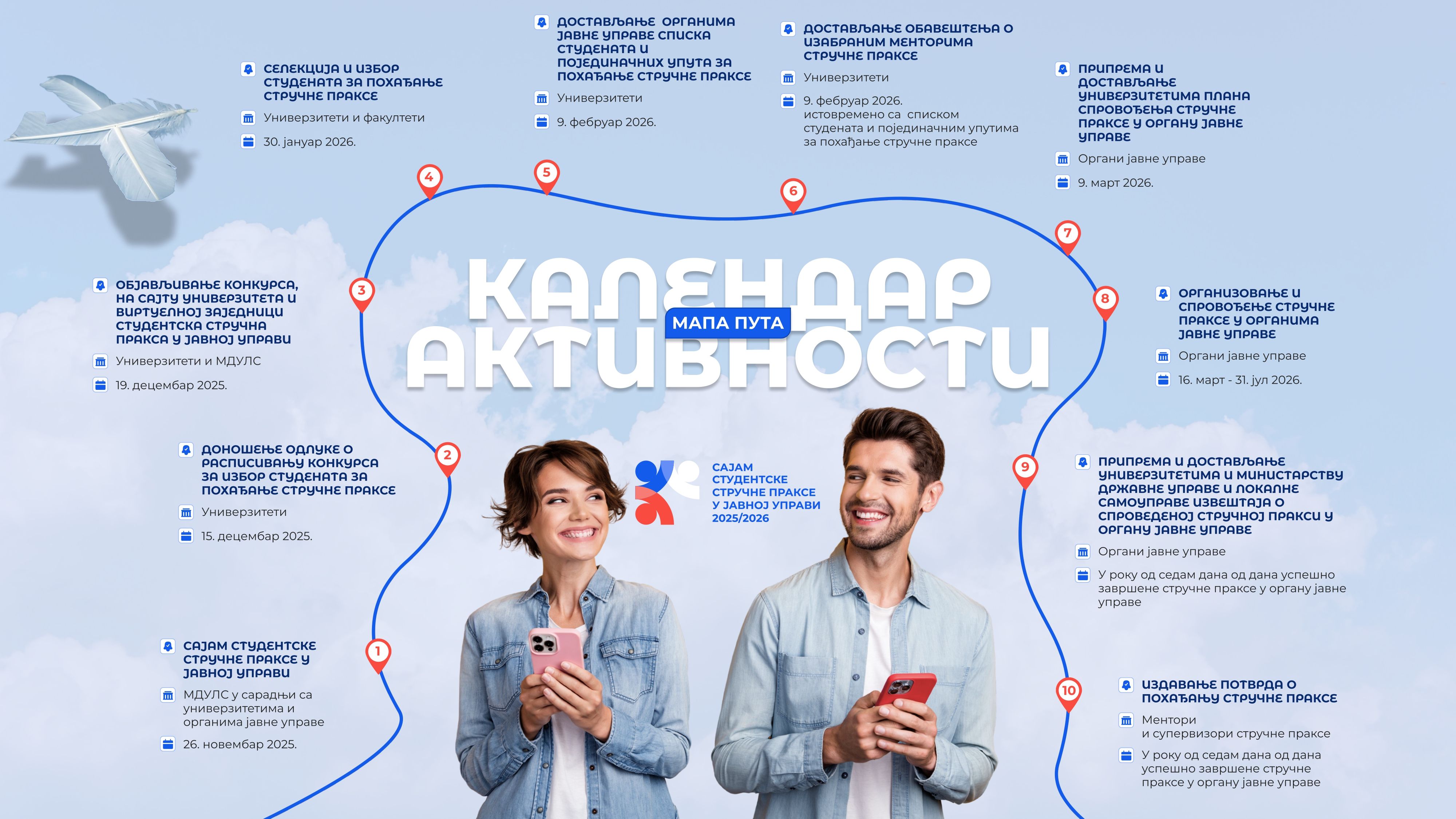 МАПА ПУТА (КАЛЕНДАР) СТУДЕНТСКЕ СТРУЧНЕ ПРАКСЕ У ЈАВНОЈ УПРАВИ 2025/2026