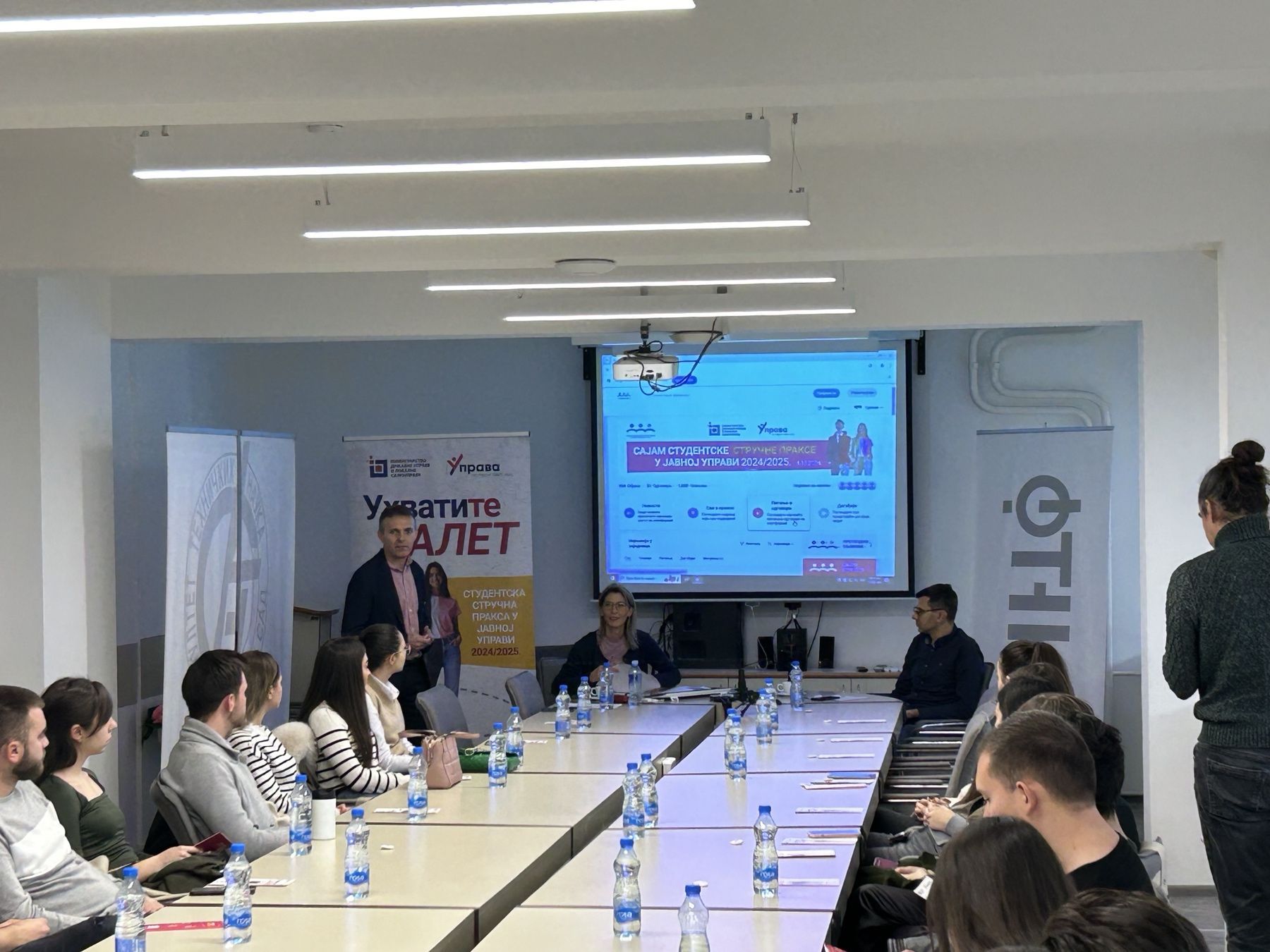 Трибином на Факултету техничких наука Универзитета у Новом Саду, наставили смо са промоцијом студентске стручне праксе у јавној управи 24/25 године. О приликама које им се нуде кроз стручну праксу у јавној управи у академској 2024/2025. години, са студентима су разговарали представници Министарства државне управе и локалне самоуправе, Факултета техничких наука и Универзитета у Новом Саду.
